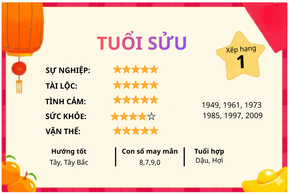 Tử vi năm 2026 tuổi Sửu phân tích chi tiết vận trình tổng quan, tài lộc, sự nghiệp, quan hệ và sức khỏe. Nội dung tham khảo, định hướng tích cực cho năm mới.